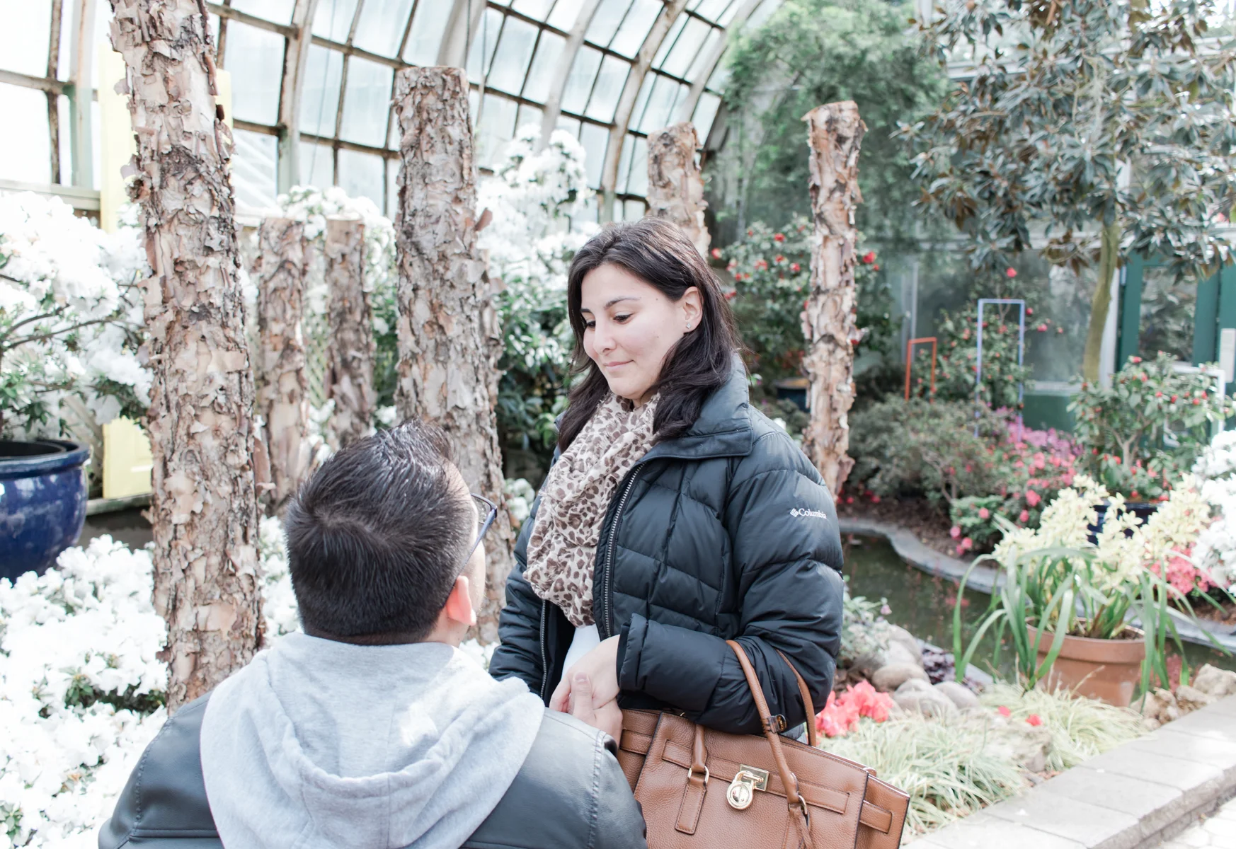 When Andres contacted me about photographing his surprise proposal to his girlfriend of 7 years, I was elated! Andres and Paula recently moved to Chicago from Miami and he wanted to find a warm, tropical place to propose to remind her of her home and family. We decided that the Lincoln Park Conservatory would be perfect!