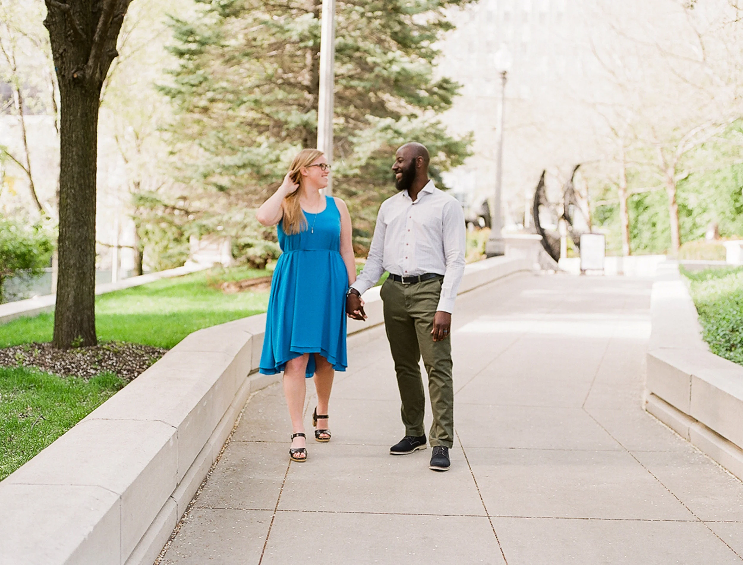 Thinking back on Carolyn and Justin's engagement session just makes me smile, plain and simple! This jet-setting couple had just returned to Chicago from a trip to France when we headed to Millennium Park to capture their engagement photos. Lurie Garden was in full bloom with tulips in shades of pink and orange - the perfect backdrop for a Spring engagement session! After frolicking in the sun for a bit, we headed to the Art Institute garden to snap a few more pretties on film.
