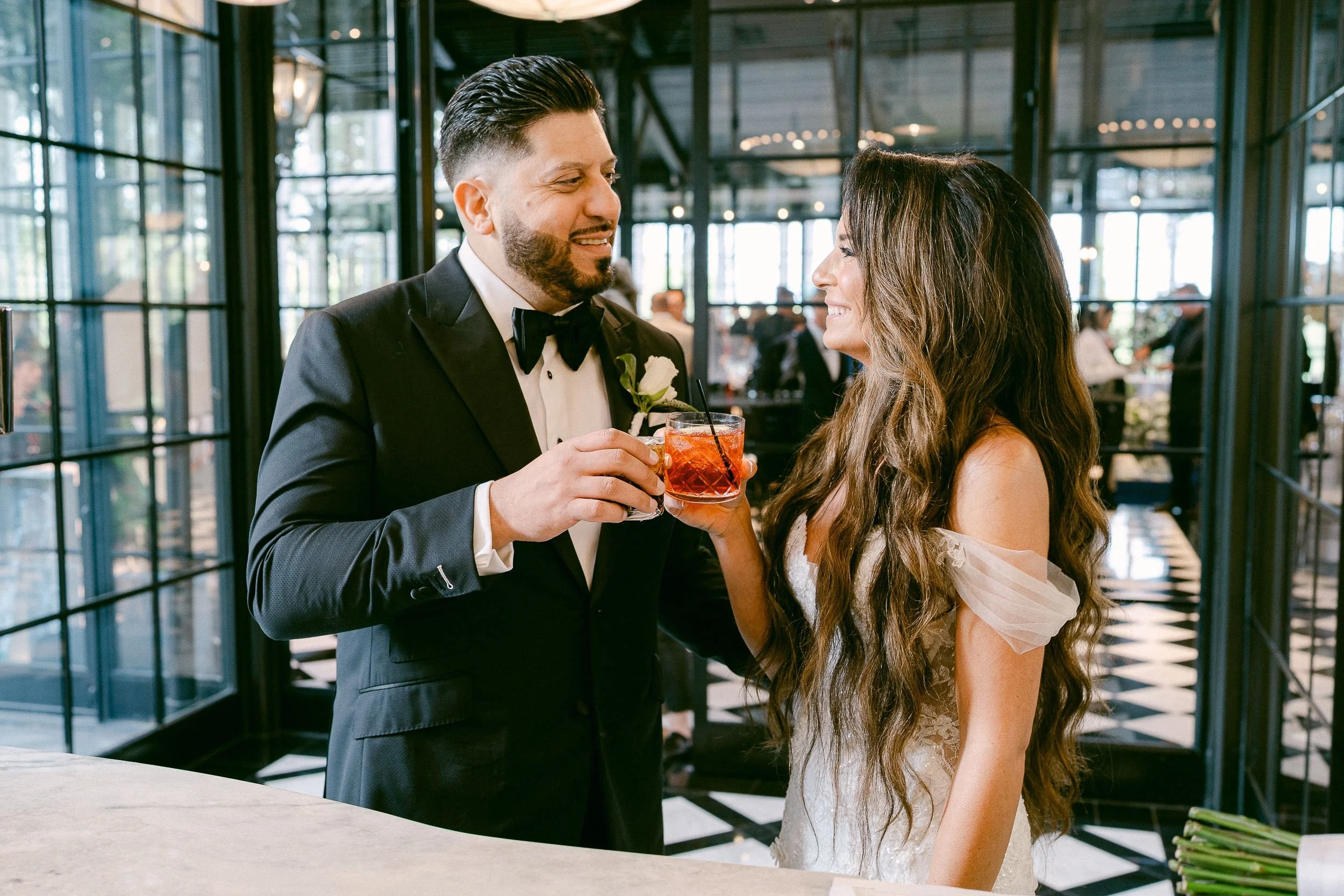 Every detail of Daniela and Jason’s wedding was rooted in bespoke style. The bride stunned in a couture gown that featured intricate hand-beaded embellishments, a sweeping train, and delicate gloves—timeless with a modern edge. Jason looked equally dashing in a custom-tailored tuxedo, perfectly complementing the wedding’s elevated black-tie aesthetic.